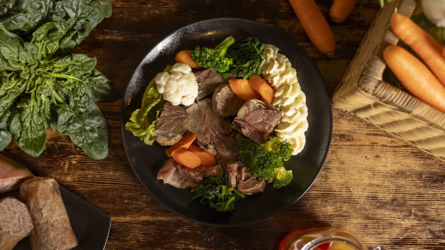 - Il bollito di modena... ma senza carrello! Un grande classico dell’osteria: cinque tagli selezionati di manzo e due di maiale, cotti lentamente nel brodo come da tradizione. A completare il piatto, verdure cotte, purè di patate, mostarda artigianale e una selezione di salse fatte in casa.