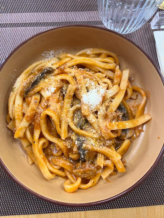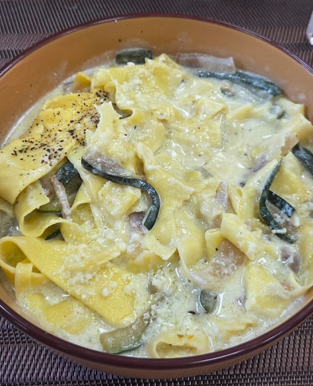 Pasta fresca laminata a mano, con ragù bianco di cinghiale.
