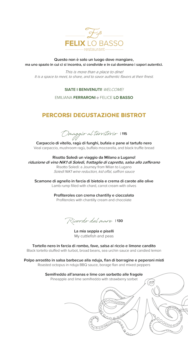 Menu omaggio al territorioCHF 115 per guest