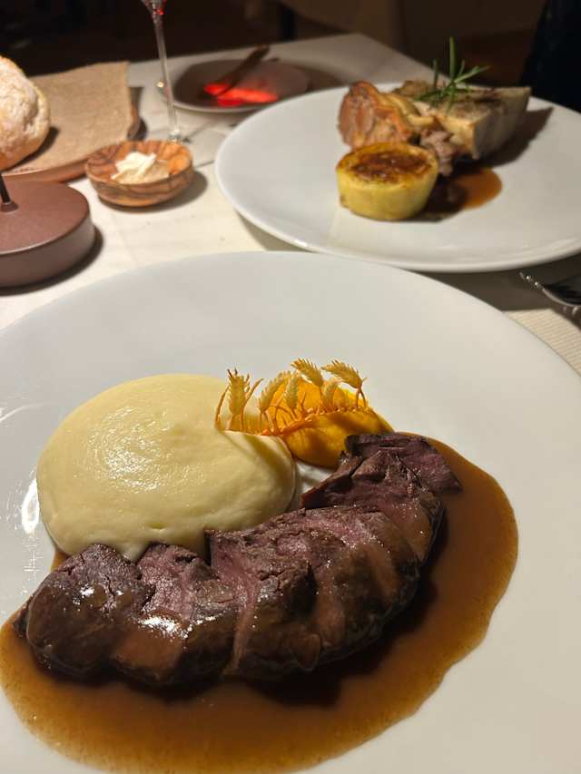 - Gratinated veal loin – its shank – koji breadcrumbs – potato millefeuille