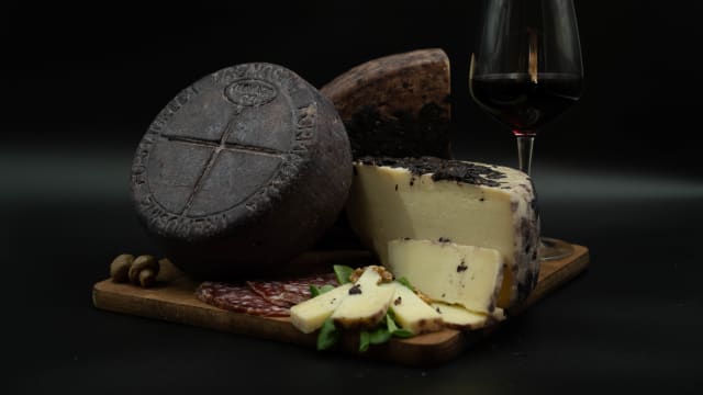 Tagliere selezione di salumi e formaggi con miele al tartufo, cipolla rossa caramellata e composta di fichi