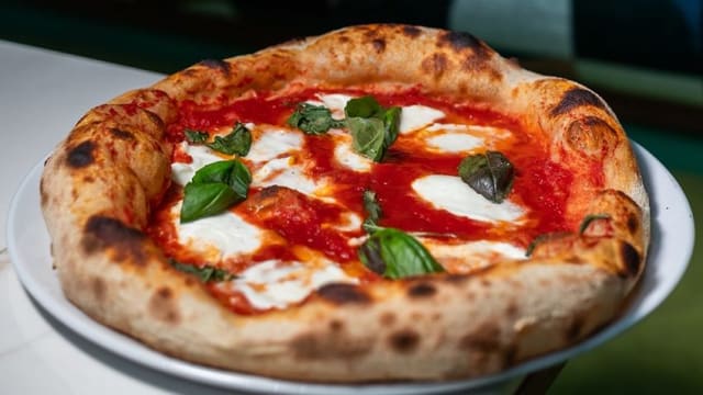 Pomodoro pelato, mozzarella fior di latte, mousse di ricotta homemade, ventricina "levoni", nduja, olio evo 'ter' 100% biologico "oleificio carbone", basilico.
