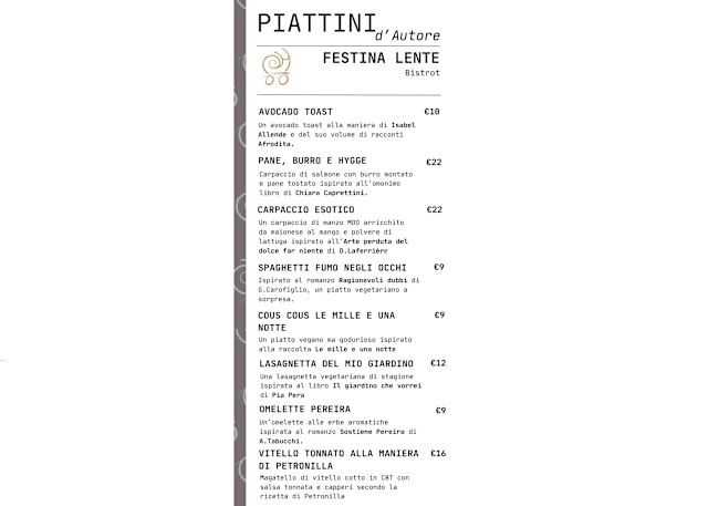 Festina lente è un piccolo flower bistrò, che offre ai propri clienti un ambiente unico e raffinato. Il menù cambia ogni mese ed è dedicato ad un ingrediente di stagione, rimodulato in diverse consistenze. Fiori, lume di candela, cucina curata nei dettagli, musica jazz. Tutto all'insegna della tranq...