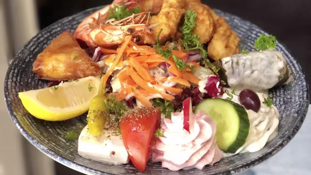 - Feta-tarama-tzatziki-tyropitakia-salade-tomate-concombre-calamars-gambas-dolmas