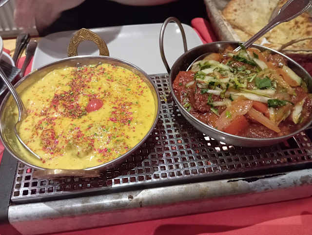 - De poulet tandoori, de tikka kebab, de boti kebab et de seek kebab. Servi avec de la salade.