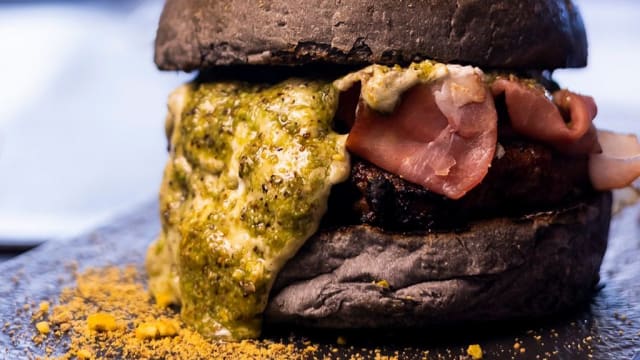 Hamburger di scottona 200gr, speck, stracciatella, pesto di pistacchio