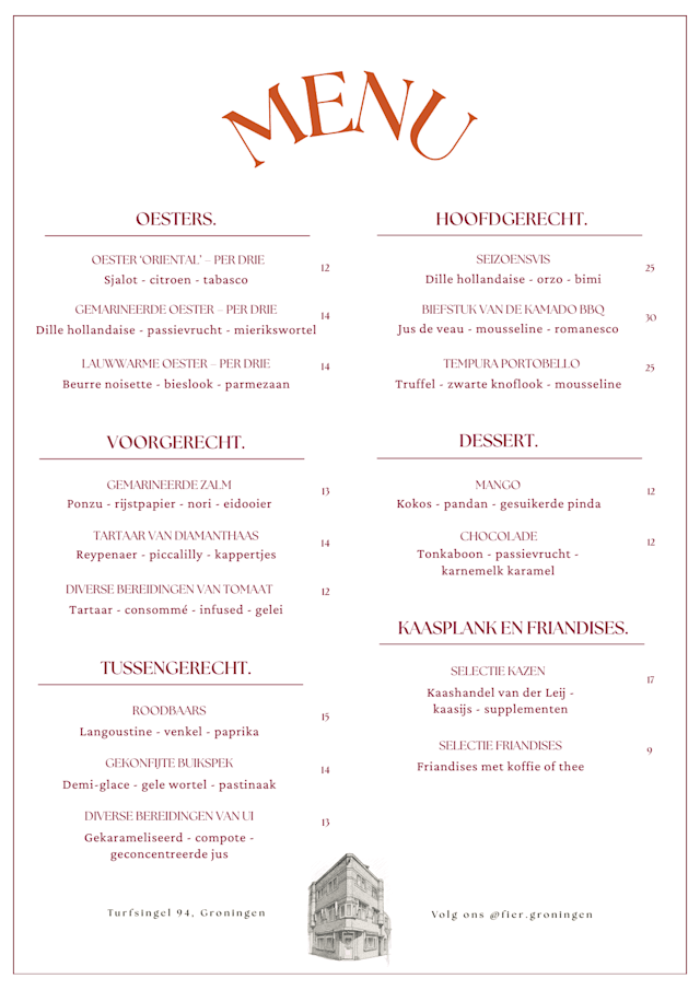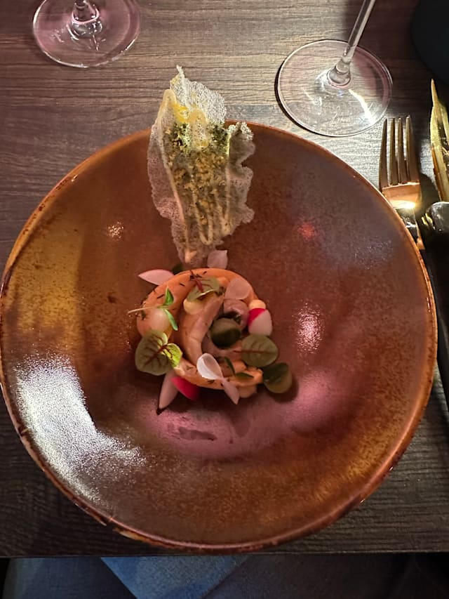 10/10A new restaurant in town which is very convenient for the Stadsschouwburg. The menu is interesting, with some unusual dishes. We started with oysters and then I had teh zeewolf, which was perfectly prepared and elegantlypresented. I will go back.