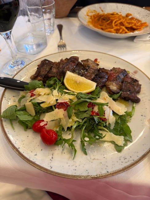 10/10From the moment my husband and I walked into the restaurant, we felt like we were at home. The staff went over and above for us, they were friendly and warm. The food was superb and the ambiance was beautiful- old world Roman charm. The best part was that we got to eat amongst the locals. That made the experience so memorable. Wine was fantastic! The pistachio tiramisu was a serous dream! Highly recommend.