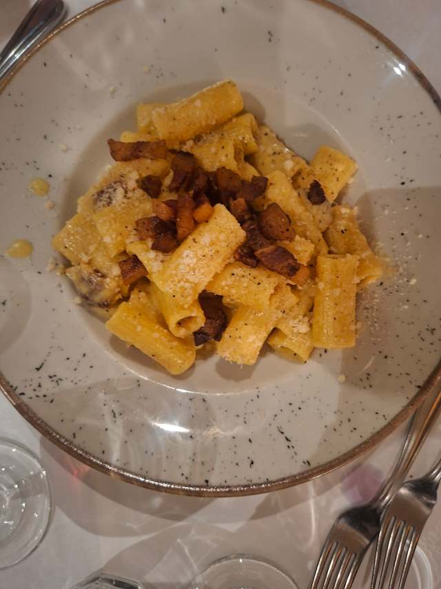 8.5/10The food was good and the restaurant was beautiful. I ordered a lasagna, which was well made; and a Cacio e Pepe but it wasn’t my favorite I’ve tried. I went with a large group of friends and they accommodated us very well on the terrace, so if you’re looking for a place to attend with family and friends or for an event, it’s a very good option.