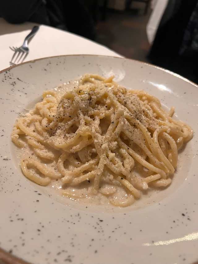 - Pasta all'uovo, pecorino, parmigiano, pepe nero