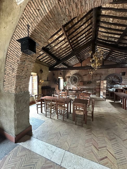 8/10We often think the food in these big restaurants is inferior to small ones. This is not true at Fieramosca (and others) where the dishes are true Italian and especially Roman. These are almost always excellent examples of local cuisine without aspirations to grandeur. The ambiance is fun and the beauty of an old building enhances the feeling. Staff are friendly and as attentive as a large crowd can allow. They happily found dishes for my vegan diet companion, my grilled octopus was perfect. And the cost was very reasonable.