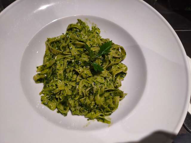 9.5/10Pork cheeks were beyond render and delicious. My husband had the prawns on pesto over tageliteli. Excellent also. The ambiance and vibe were very cool. Highly recommend
