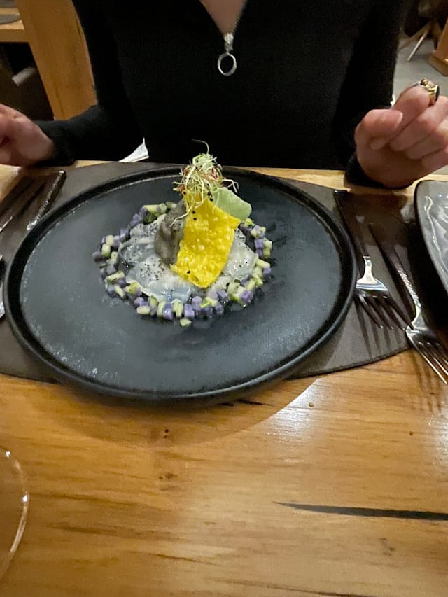 7/10I arrived at this restaurant with my family after researching a lot online. This seemed like a hidden gem, with hyper-local food and some well composed dishes that speak to a Michelin-style experience with a steakhouse style menu. Sadly, the food was mostly good but was lacking here or there while other dishes were winners, such as the hay soup and the veal cheeks, but the service was particularly laughable. Some of this was probably due to being lost in translation, but not all of it. The server was absent a lot, served red wine before white, forgot place settings and asked who got what, forgot some menu items, and ultimately seemed overwhelmed. I had to pour wine for the table a few times as they were absent. We didn’t get a bottle we ordered, and they had no idea how to pair wine really. So, it was a mixed experience. We left without dessert fearing other mishaps and we got the impression the server did not like us and couldn’t handle that size of a table, despite us being quite quiet and subdued.