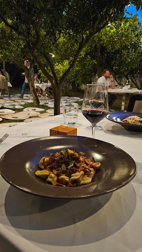 9/10It’s a Masseria in a beautiful piece of Land about 10 kilometres from Lecce. The structure is really wonderful, the restaurant is good in general and run professionally. Very good service indeed. As to the food our experience was good but not “a place to remember”. We had two starters that were very simple (probably too much) though tasty. Then we shared a Fiorentina that was a bit cold inside though they provided a stone to finish cooking. We had an excellent bottle of primitivo and shared one dessert. With 20% discount of the Fork we paid a bit over 40 euro per person which is very adequate for the place and the excellent service and a bit expensive for what we ate. Dogs allowed and welcomed, for this we will certainly return