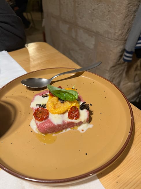 4.5/10The service was very slow. We waited an hour for our first which was mediocre courgette flowers. The next dish came 1/2 an hour later. We had 2 beers and 2 glasses of wine and paid 100€. They gave us a grappa in edxcuse but I must say don’t go there.