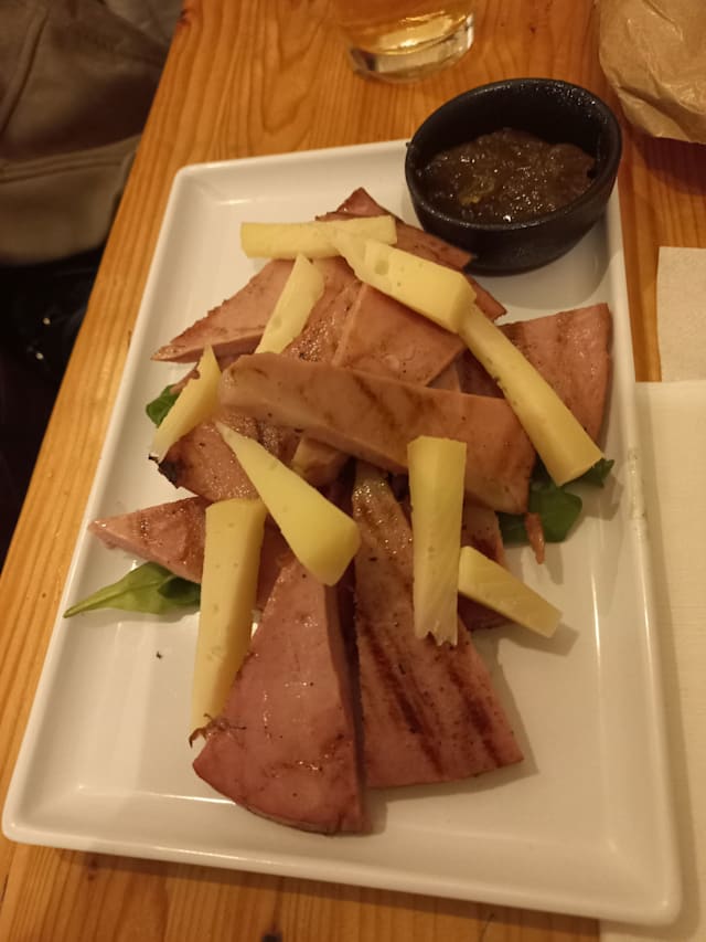 Mortadella di cinghiale arrosto con caciocavallo stagionato in grotta e confettura di fich