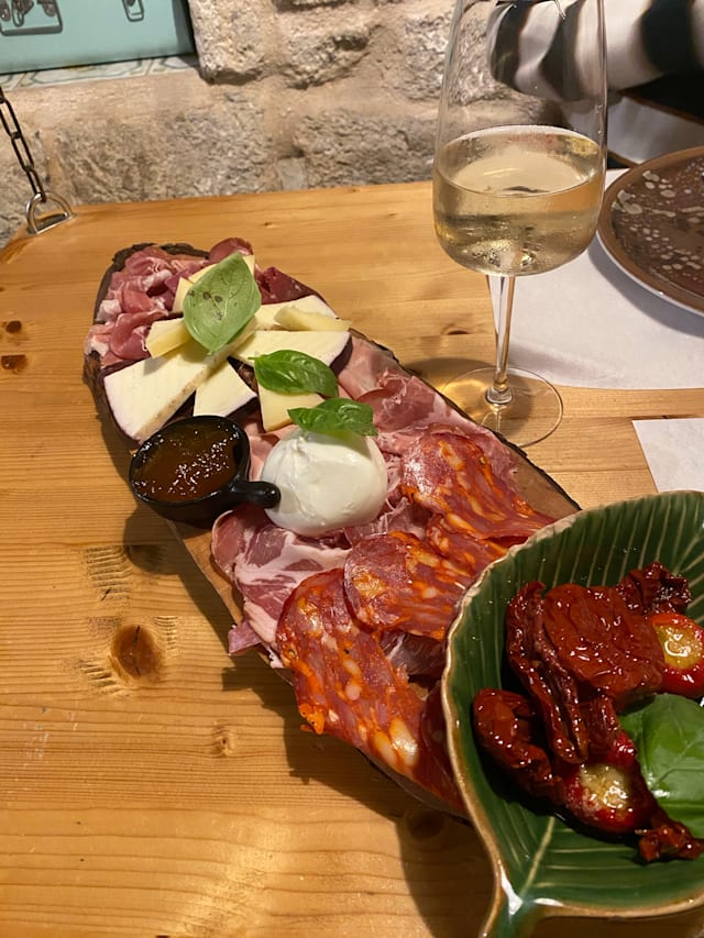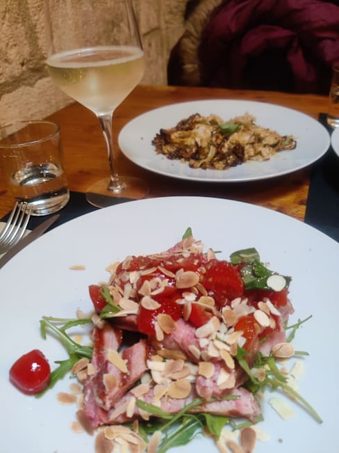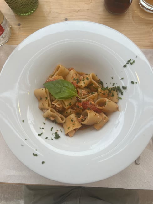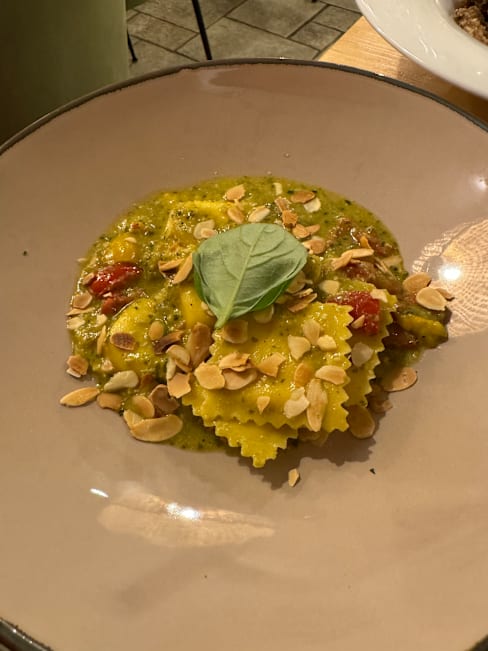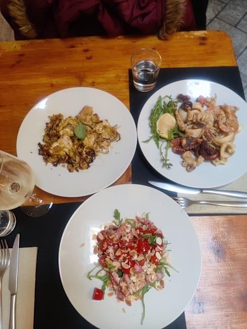 2/10First time writing a review since we never had such a horrible food experience. The artichoke and mushroom salad (14€) was with canned artichokes and canned mushrooms, and it only tasted of brine and insanely strong lemon. The filled burrata pasta (18€) was 8 tiny pieces of pasta with bad quality cheese and bad supermarket quality pesto sauce. The filo pizza (9€) was not only uneatable given how horrible it tasted, almost like doughnut dough, but we also found a huge chunk of black plastic inside the crush - we couldn't believe it! When we showed the plastic to the waiter she just dismissed it and left. Lastly, the tiramisu (6€) was literally frozen like an ice cream. When we brought it up to the waiter she dismissed it again by saying it's impossible since it was in the fridge, despite the fact that we showed her our spoons couldn't even get through it. It's a strong word, but it was literally a disgusting food experience so please don't be fooled by the reviews.