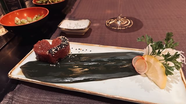 - Tartare di tonno rosso e tobiko con maionese, sesamo, tabasco, wasabi fres