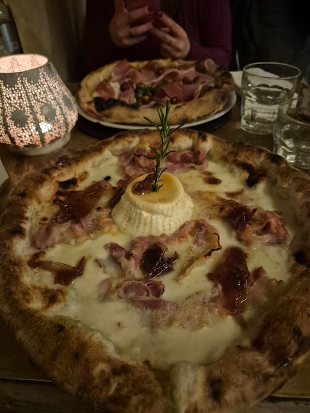 9.5/10Very nice Restaurant with excellent food. We had a cheese plate with honey, a typical italian salad and two wonderful tasting Pizzas. We were happy to find this restaurant through The Fork