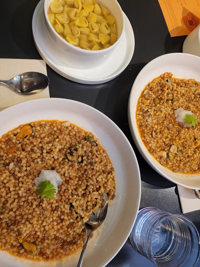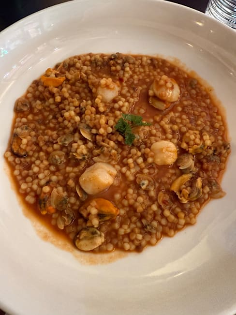 9.5/10Great fregola with clams and pasta with botarga and lemon we shared were great. Service polite and helpful and the ambiance cosy.