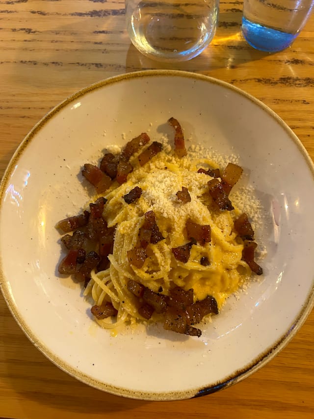 5/10It was just not that nice. The pizzas were pretty bland with not much toppings on them. Had high hopes for those but felt you could have got better from one of the many local takeaways. My wife’s pasta dish resembled a thick soup.