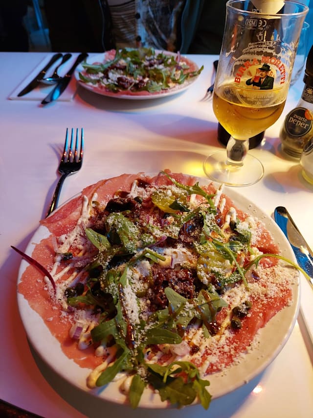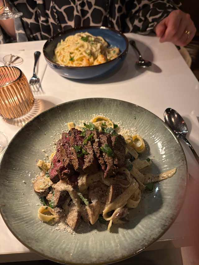 Lovely time spent in this quaint out of the huzzel and buzzel. Found a gem open in a Sunday and last minute. Device authentic food, excellent service. Responsibly priced, delicious wine 🍷. A bit pricey on the wine size all above euro27+ All in all fantastic well done to team there