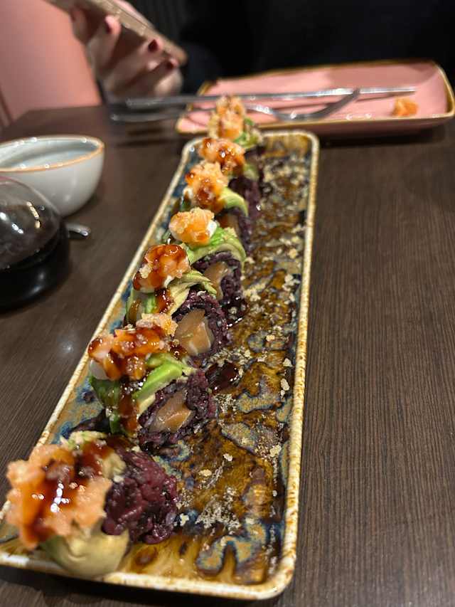 - Tonno interno ed esterno, avocado, salsa spicy, teriyaki e panko aromatizzato