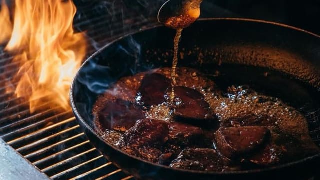 Caldo dashi japonês, ponzu de manteiga, cogumelo shimji