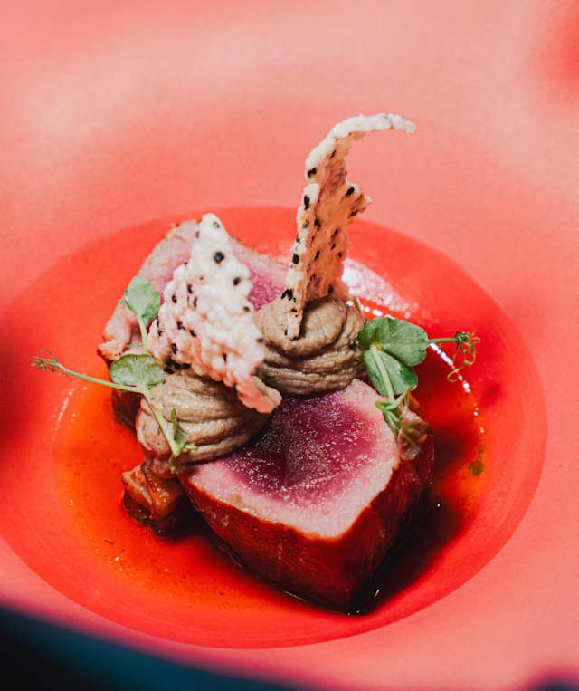 - Vitello tonnato, salsa tonnata e sashimi di tonno rosso, cappero fritto