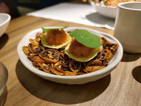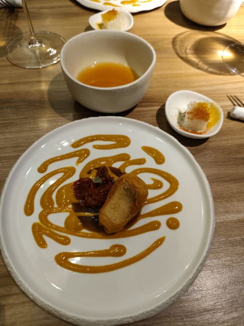 9.5/10+3The staff embodies grace and warmth, guiding you through a culinary voyage that feels like setting sail upon a serene, boundless ocean. Each dish unveils waves of flavour — at times bold and untamed, at others delicate and whispering — a rhythm as captivating as the sea itself. The journey finds its gentle harbour in two exquisite desserts, whose sweetness anchors you softly back to land, leaving a lingering sense of wonder. The wine pairing was a revelation, harmoniously tuned to every plate, unfolding with unexpected notes that danced beautifully across the evening.