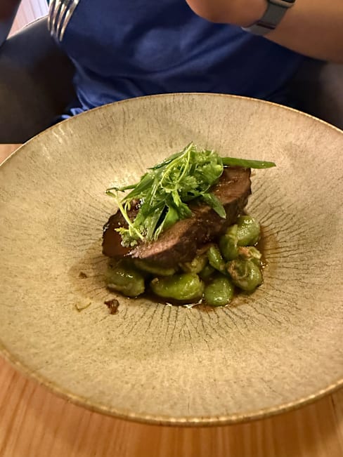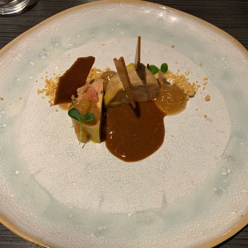 10/10+2Very unique French-Japanese fusion dishes that were delicious! They have a set menu with limited options, but all sounded good. We started off with several amuse bouches and then came the apps of duck fois gras with Kim chi and beef cheek. Both cooked to perfection. My main dish was the duck breast with asparagus which was also very good. Lastly we had the chocolate cake and a basil sorbet that was to die for! Great food and service overall at a reasonable price. Highly recommend.