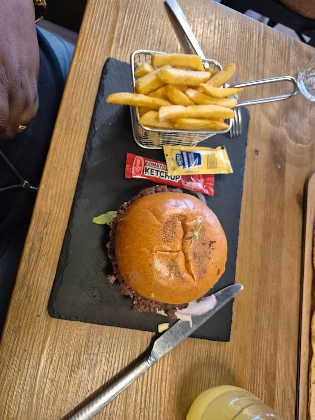 8/10We chose this place because it said it had gluten free on the fork page but when we arrived there was only a salad option for me so I didn't eat. My husband had burger and chips and he said it was good.