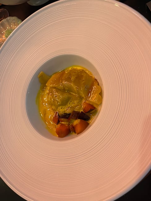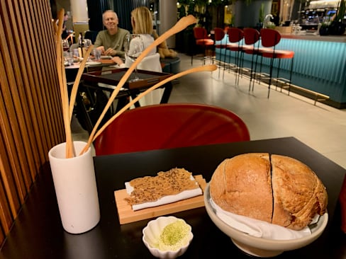 8/10Dinner at the restaurant since we were staying at hotel. Wheat bread was tasty, but breadsticks tasted stale. Cauliflower and artichoke appetizer was quite good, but a couple and their dog were sat near us and that was not good for ambience or hygeine. Pumpkin autumn main dish was actually good but just overpriced in my opinion.