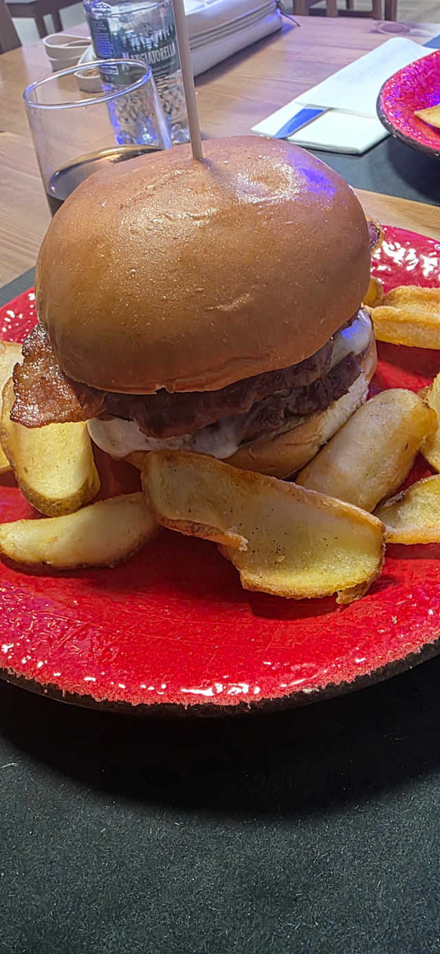 - Hamburger di manzo, bacon croccante, cheddar e bbq