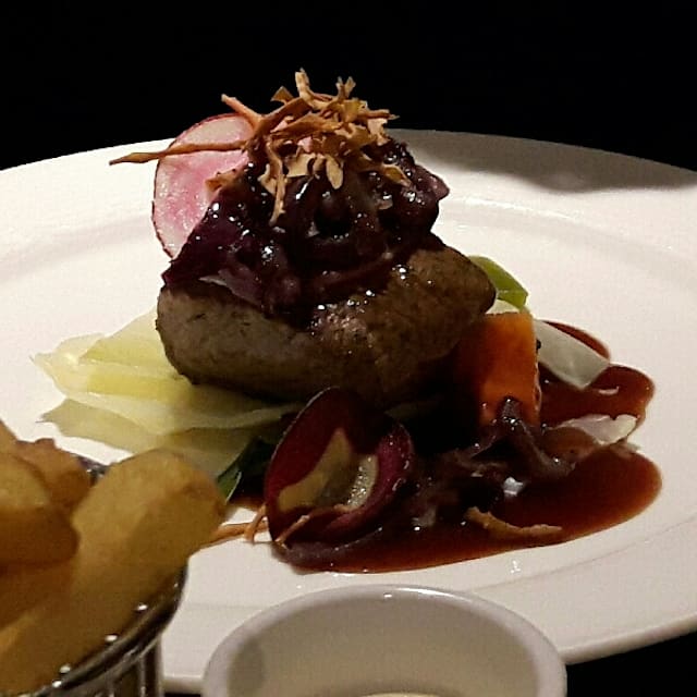 8/10The food was ok and service was good.. There were a few guest at 12+ for lunch with a big restaurant probably because of Kingsday which was great for us as we like it quiet.