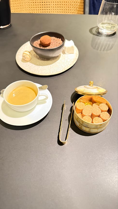 5/10We were excited to try this Michelin-starred restaurant, but the experience fell short. As vegetarian and vegan diners, we received repetitive vegetable-based dishes with no protein or creativity. Service felt cold and disengaged, and the atmosphere was uncomfortable — the room was warm, the chairs were heavy, and the table was too cramped. We were also surprised by hidden charges, like €9 for a bland tea. Overall, the meal lacked flavor, variety, and hospitality. Disappointing, and not reflective of what we expect from a Michelin-rated experience.
