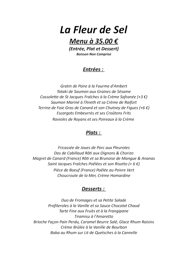 9/10Pleasantly surprised during a stopover. We enjoyed the setting and the service, the plates were beautifully presented and had wonderful tastes. ViaMichelin should make a note of Fleur de Sel!