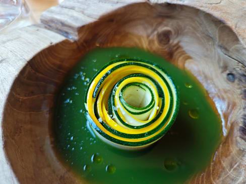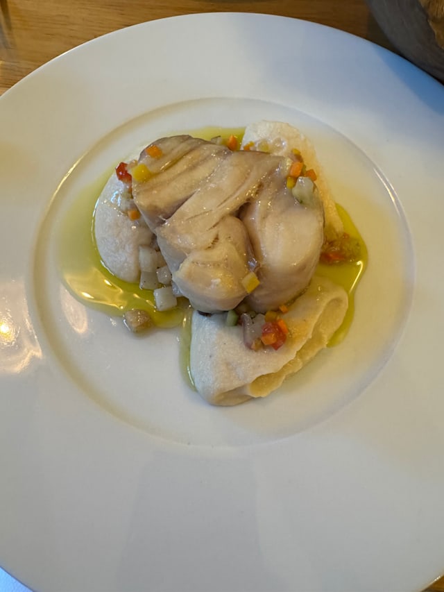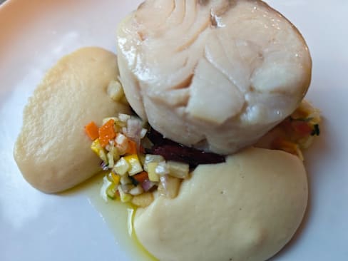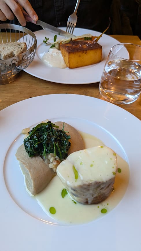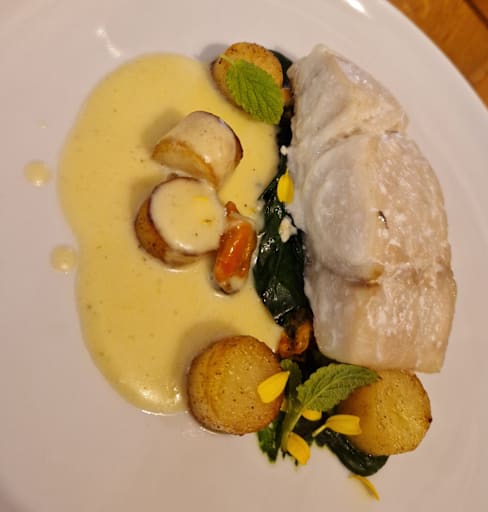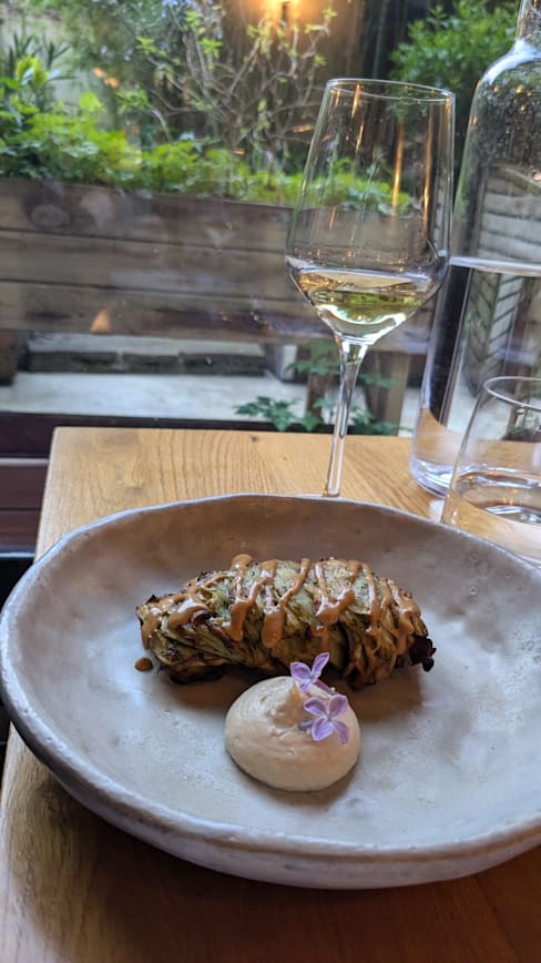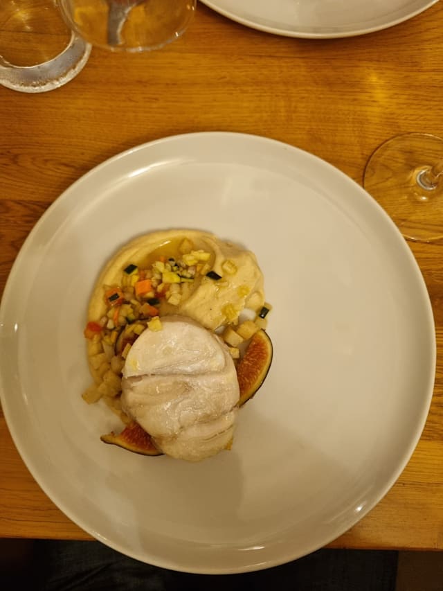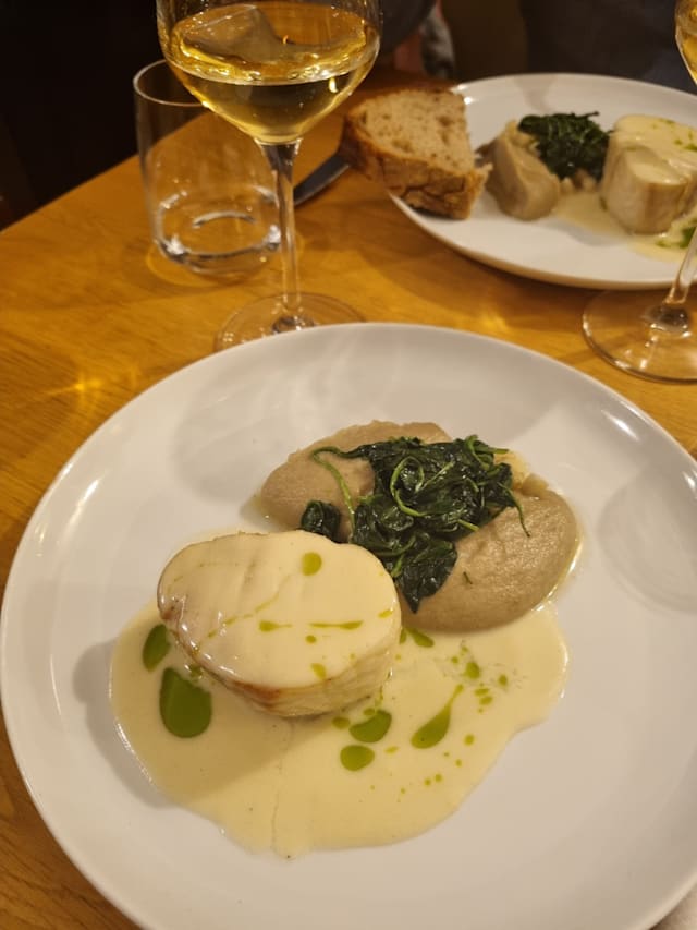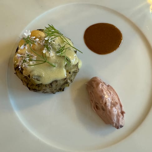 8/10General: Friends and I came late due to traffic - staff were still professional, no fuss at all. Reasonably priced, quick service, well curated wine list allowing broad spectrum of price points. Modest vibes. Enjoyed the back garden as view. Starters: Hake starter was heavenly - the three layers of flavour were harmoniously balanced. Fleur de courgette starter was okayish for me, my friend adored it. Mains: The Saithe main course was cooked beautifully, fish was moist and light allowing the residual salinity of the ocean to be the perfect two-to-Tango partner of the fish —- the gentle citrusy sauce provided a refreshing relief in the mouth after. The cannelloni in Gorgonzola sauce - my other friend can’t stop ruminating this dish. It was his meal of the month, only complaint? He wished he had more of the serving, he just can’t stop loving this dish. Pre-dessert: Herb sorbet - not my thing. The Savarin was lush though. Many thanks Chef and members of the staff!
