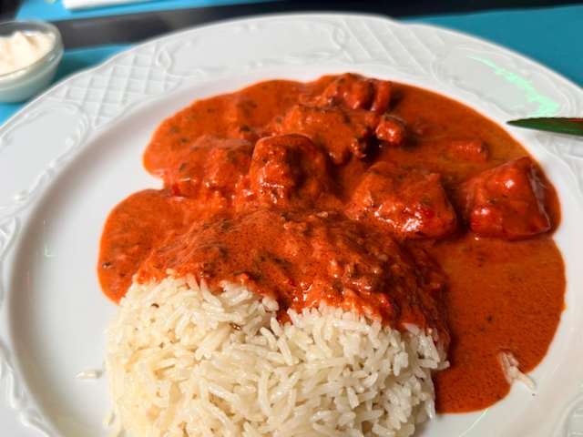 - Pollo adobado con especias tandoori y cocinado con salsa de tomate y yogur