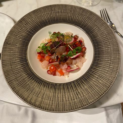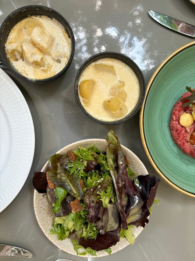 10/10Extremely nice environment where Champs Elysee's traffic is entirely muffled. Staff was extremely kind (and even entertaining haha) and food was plenty. We (2 people) ended up taking the mixed starters (to share) and the Danica plate which were definitely too much in quantity so be aware 😊. The restaurant kindly packed our leftovers for us to take home.