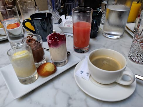 6.5/10The restaurant is very well positioned along the Champs-Elysées and the garden setting very nice. The service wasn’t very attentive as we had to ask twice for the water and later for the sugar that was brought when the coffee was cold ( they changed it, but it is not professional). Luckily the food is good and well presented. The price appropriate for the location but the discount make it more proportioned to the quality