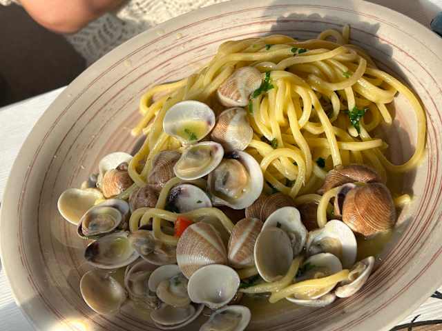 Great location (1st line), shame they don't invest in a window cleaner to make the most of it. Good food though not the cheapest. pleasant staff.