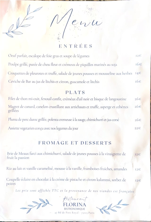 10/10Simple yet elegant and warm neighborhood dining room. Very pleasant staff. One very attentive and pleasant waitstaff was caring for the entire dining room. She was most pleasant and both she and the chef were warm, friendly and approachable with great senses of humor. The food was outstanding, fresh and with beautiful presentation. I started with the salmon and had the filet de maigre for my main course. I rarely ask for a recommendation for a wine pairing but in this case I am happy that I did as the chef recommended a lovely red from the Languedoc which paired very well with this hearty Mediterranean fish. With some difficulty I passed on dessert as there were multiple very enticing options but I think I may succumb when I return there for dinner again this week. For those for whom this is important, I do not know if the staff speaks English because we spoke in French. But I am confident, given the demeanor, spirit and warm personalities of the team there that they would happily accommodate any person and skillfully work through any language challenge. A wonderful find and I WILL be back and soon!