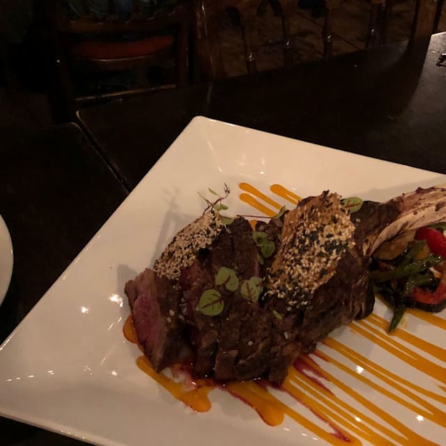 Gemarineerde rib-eye chipotle mayonaise, zoet zuur van ui