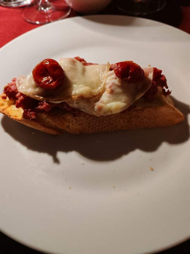 - Scottata di suino nostrano, provola fusa e pomodorini confit