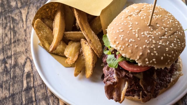 - Hamburger o cotoletta di pollo & patatine, bibita & gelato