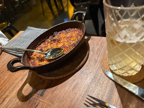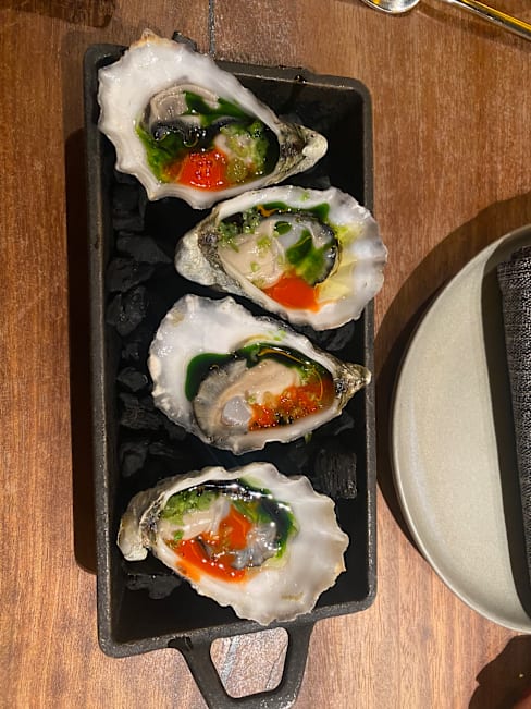 7.5/10The restaurant looks interesting inside. Very black. The bread basket wasn’t very interesting though. Oysters held high class. Our two fish mains tasted really good and so did the brûlée. What disturbed us a bit was the uncomfortable seating and the overall service. We had to ask for wine list and other list. Our service man was stressed and behaved somehow strange. Maybe first day on this job? So we expected more from visit.