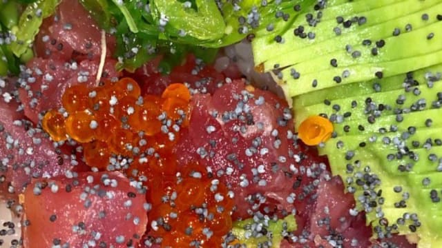 tartare di tonno, avocado, top di tonno, ponzu mayo, teriyaki e jalapeno