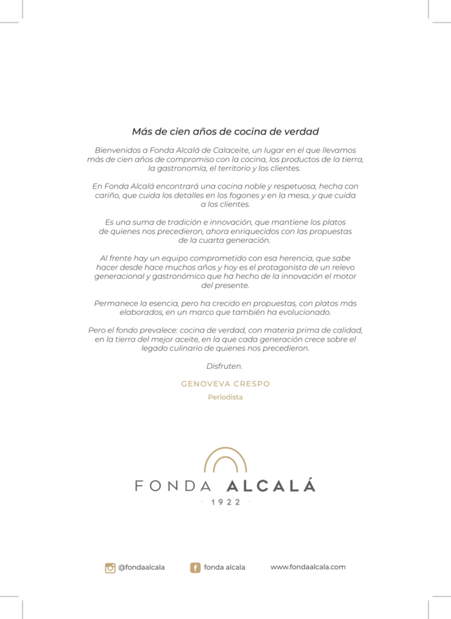 10/10Beautiful clean, spacious restaurant with light touches of history and personality everywhere. Very reasonably priced for the quality of both the food and the service. Creative well presented dishes and flavours true to their origin. I shall be back one weekend soon to try the full menu. Thank you very much team Fonda Alcala!