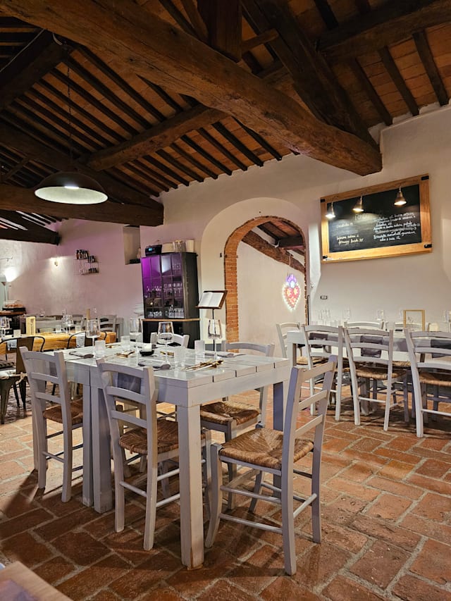 9.5/10Really great find in Tuscany. The building is worth the visit alone. The food is innovative and very tasteful. Only little problem was the wine. I took wine by the glass but the quantity of wine for €7.50 a glass was to small. I am sure they would have got 10 servings from one bottle and the whole bottle was €27 so I felt they were being too economical. Small point but this is how I felt.